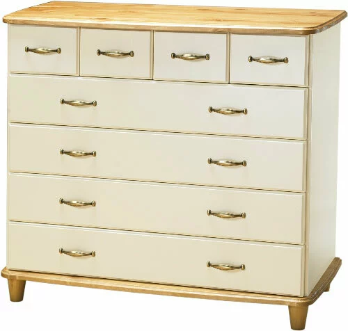 Aino lipastossa on neljä leveää ja neljä pientä laatikkoa, varustettuna metallisilla liukukiskoilla.