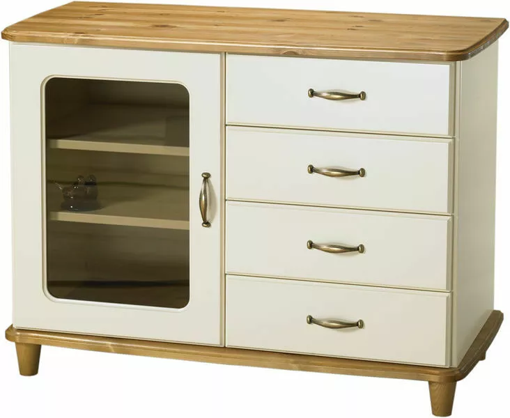 Aino 95-104 lipastossa on 4 tilavaa vetolaatikkoa sekö lasiovikaappi kahdella välihyllyllä.