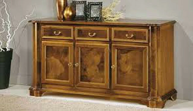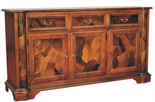 Senkissä on 3 lukollista kaappia yhdellä leveällä välihyllyllä sekä 3 vetolaatikkoa antiikkimessinkisillä vetimillä. Kaapin sisällä on yhtenäinen tila jonka leveys noin 150 cm.