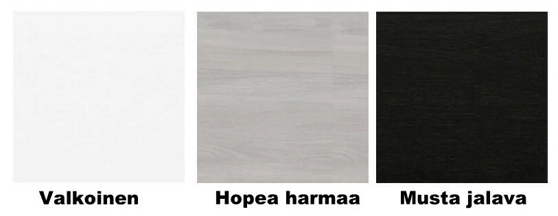 - Valkoisessa etusarjat ovat maalattua MDF-levyä ja mustassa puukuvioista MFC-kalustelevyä