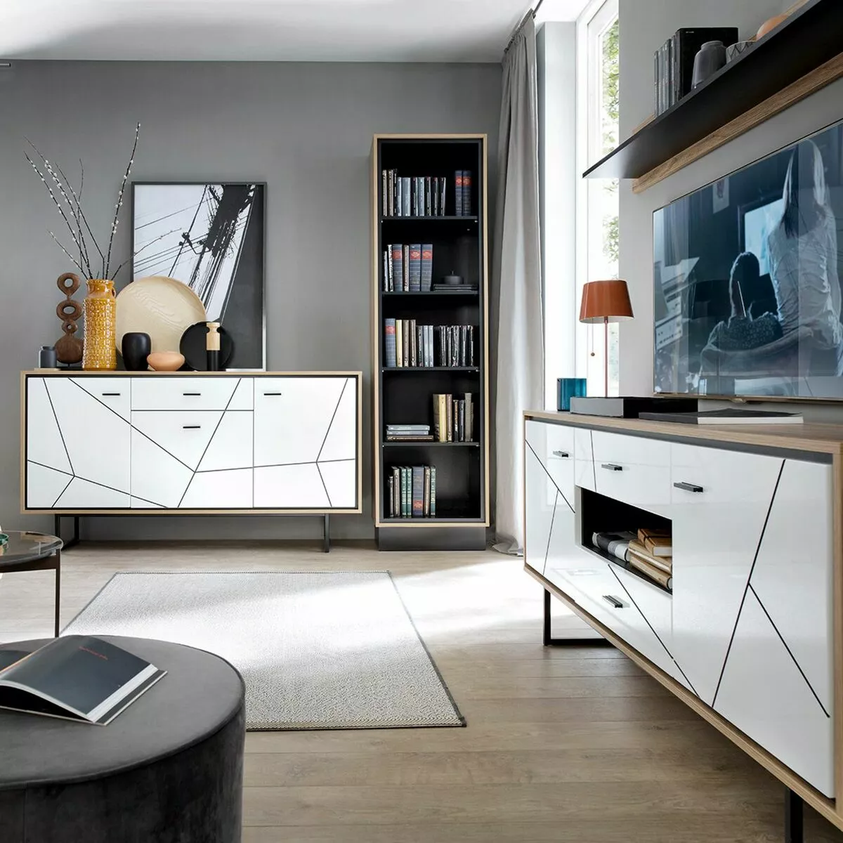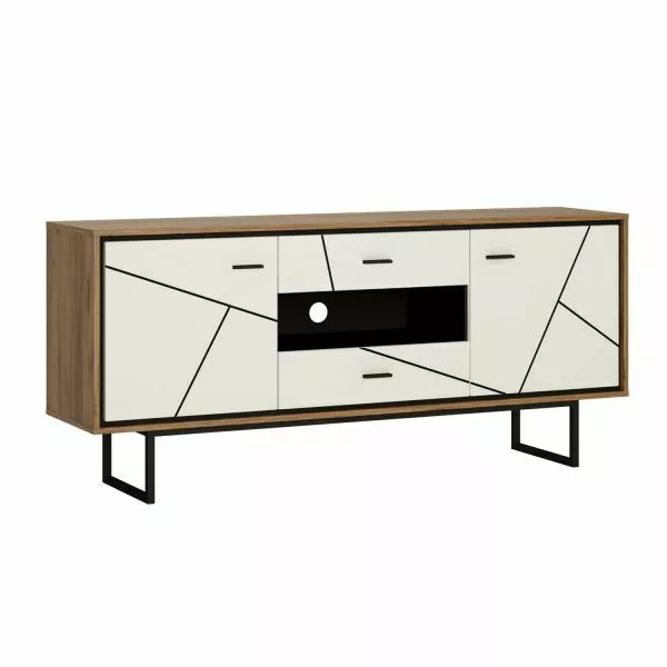 Huipputyylikäs Palermo tuotesarjan tv-taso kahdella umpiovikaapilla ja kahdella vetolaatikolla. Tuotesarjaa koristaa kauniit abstaktit koristekuvioinnit.