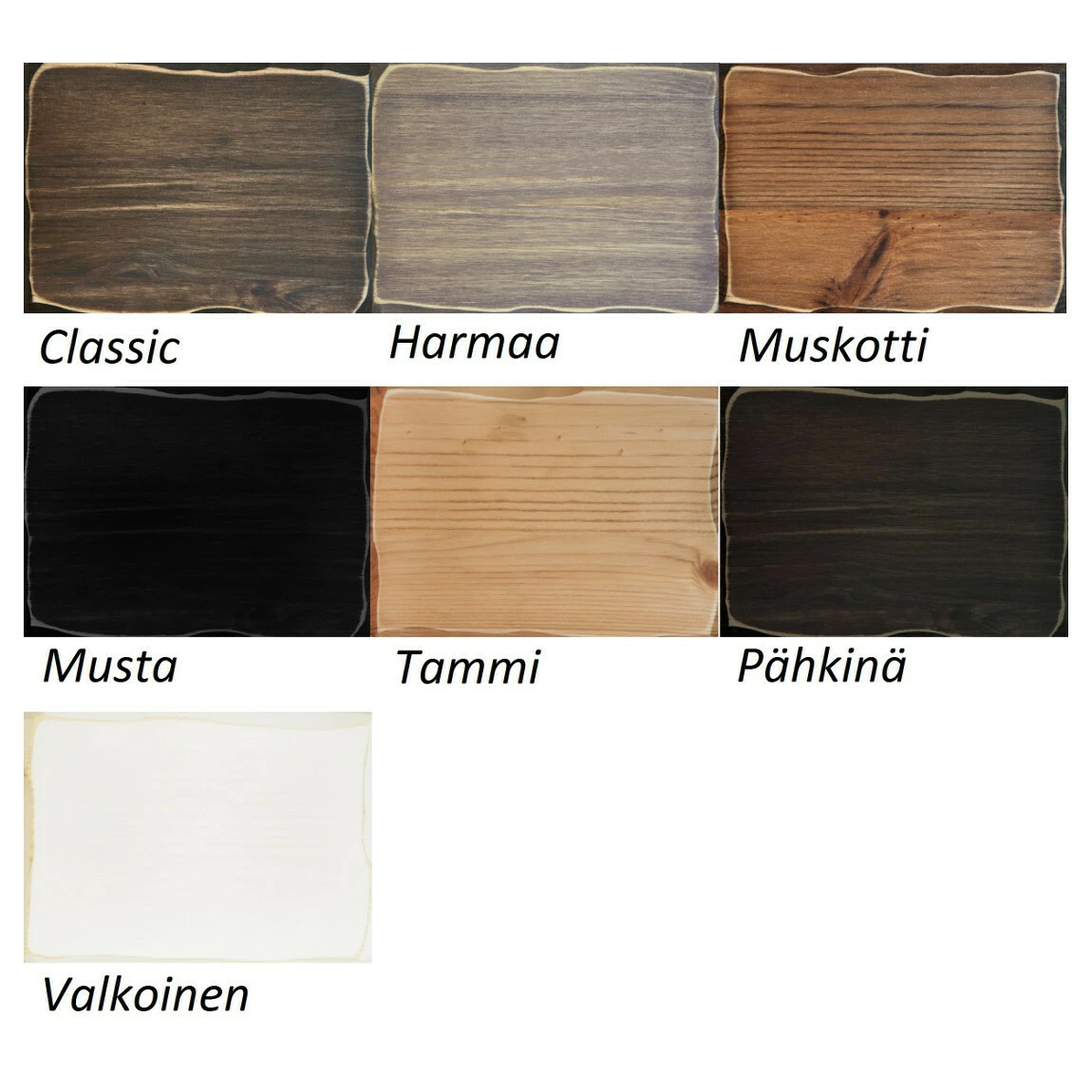 Provinssi 2 elementtihyllykkö koostuu neljästä eri moduulista. Kolmen ylimmäisen moduulin voit siirtää haluamallesi puolelle. Hyllystö on vahakäsiteltyä massiivimäntyä, värivaihtoehtoja on viisi.
