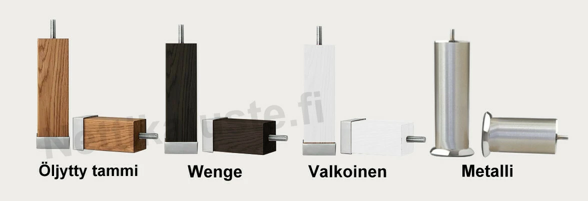 - Jalat massiivipuuta tai metallia, useita värivaihtoehtoja