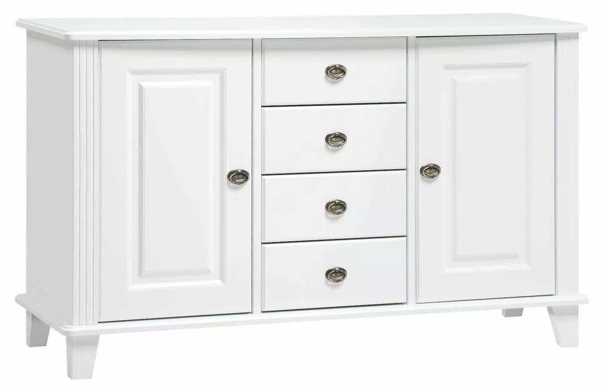 Kotimainen Rosa tuotesarjan kaunis ja laadukas senkki kahdella ovikaapilla ja neljällä vetolaatikolla.