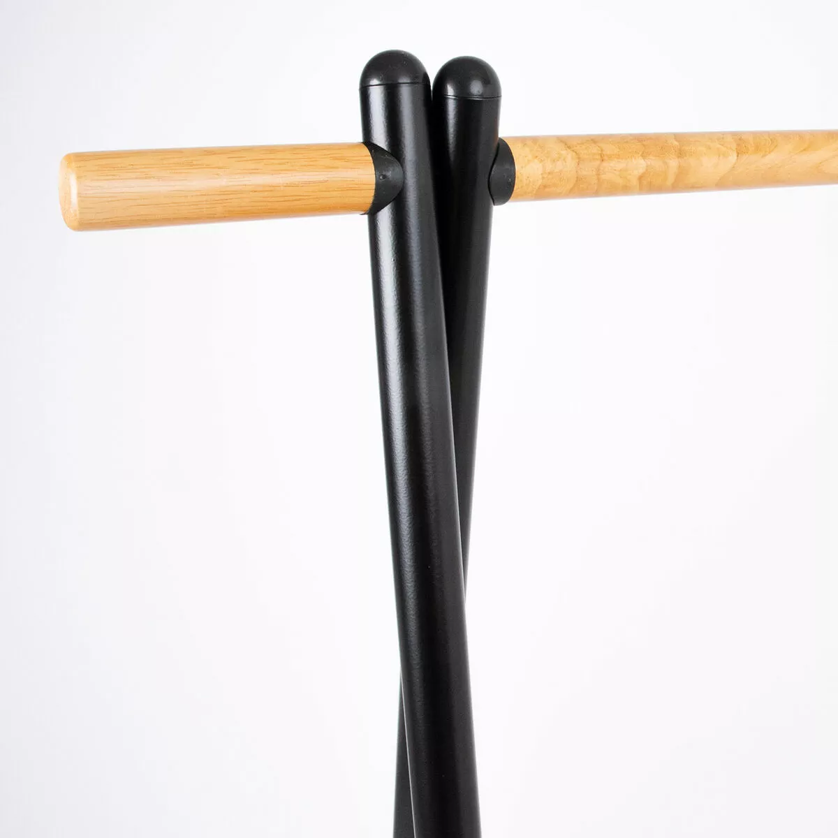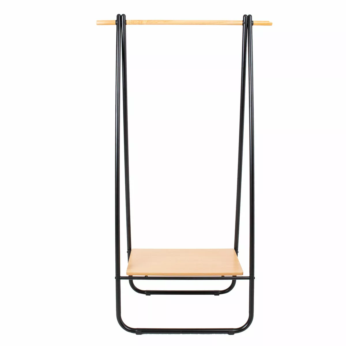 - Rekin yläosassa on puinen ripustuspuu vaatteiden ripustamisee