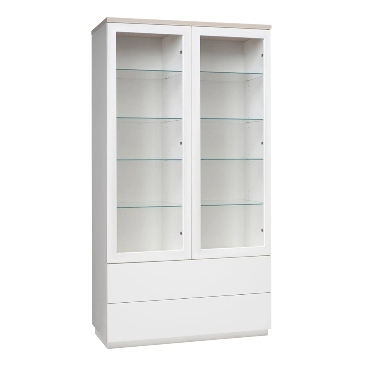 - Vitriinissä kaksi lasiovea ja kaksi vetolaatikkoa