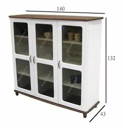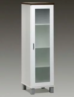 Tyylikkään ajaton vitriinikaappi lasi- ja umpiovilla.